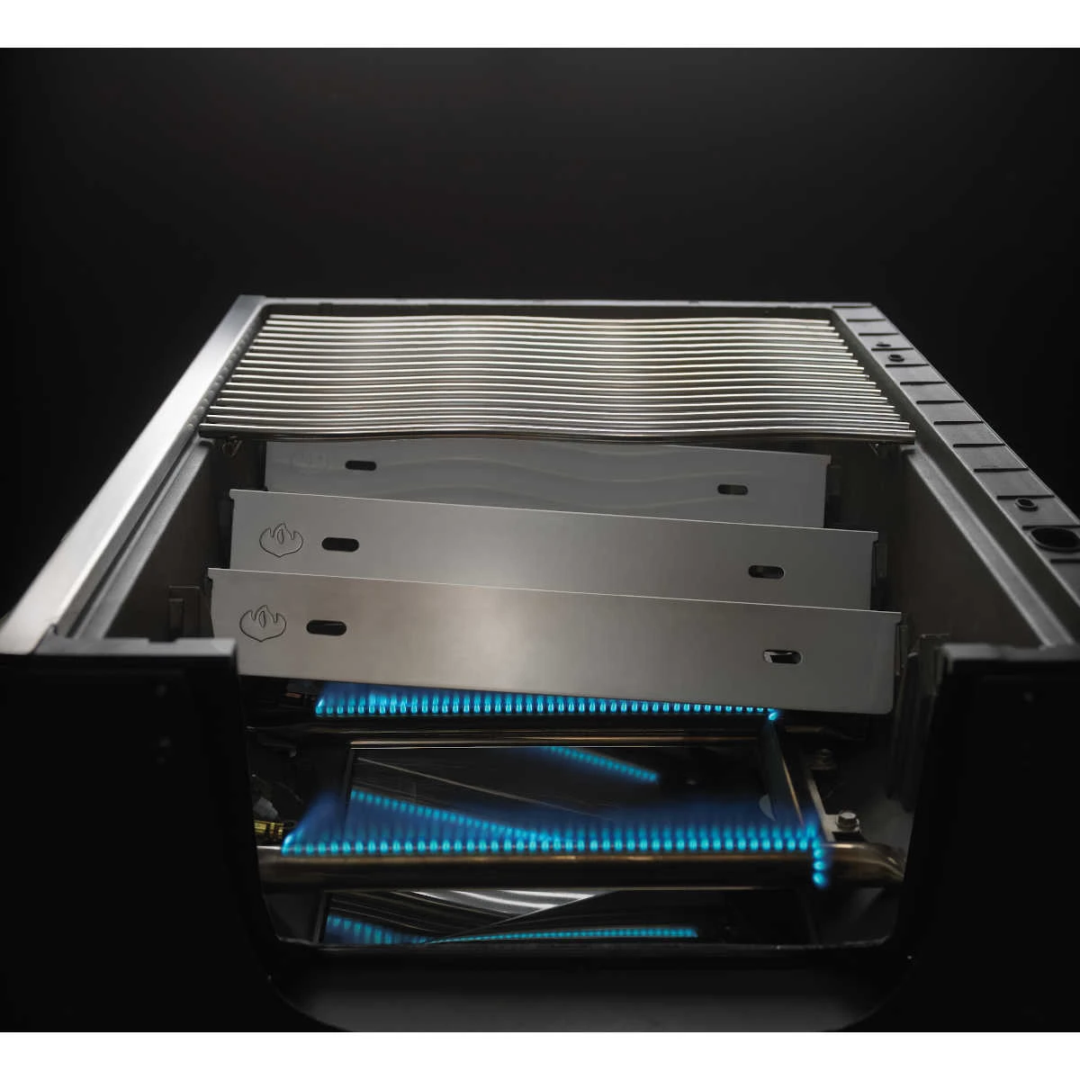 Eine extra Oberfläche bilden die Edelstahl-Flammenschutzeinsätze und werden so zu Aromaschienen, die dem Grillgut eine besonders aromatische Grillnote verleihen. Dank des geradlinigen und durchdachten Designs sind diese Aromaschienen besonders einfach zu reinigen.